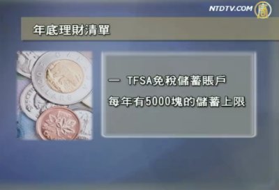 TFSA免稅儲蓄賬戶,每年有5000塊的儲蓄上限,這些錢可以免稅。
