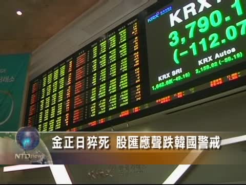 【新唐人2011年12月19日訊】金融市場上,受到金正日死亡資訊的刺激,韓國股市應聲重挫5%,亞洲股市全線暴跌,黃金價格也走低。由於朝鮮局勢不明,引發投資人憂心,紛紛買入美元避險。