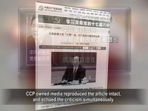 【新唐人2011年12月20日訊】中共中央委員會機關刊物《求是》雜誌,日前刊登中共統戰部常務副部長朱維群的文章,警告共產黨員不能信仰宗教。民間解讀,這反映出信仰中共的這個體系已經岌岌可危。而學者表示,中共對其他信仰的排斥,正體現了它自身的宗教性質。