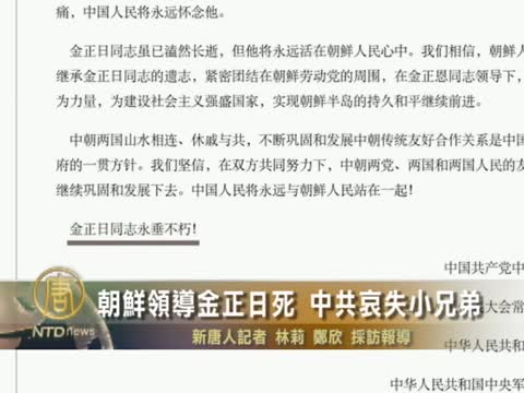 【新唐人2011年12月20日訊】朝鮮最高領導人金正日突然傳出死訊,中共中央旋即表示,痛失金正日這個親密朋友,深感悲痛,並稱,中朝兩國「山水相連、休戚與共」。朝鮮未來的國內局勢穩定,及中朝關係是否發生變化,都是國際最為關注的焦點。