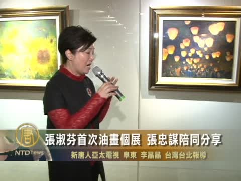 【新唐人2011年12月21日訊】臺積電董事長張忠謀的夫人張淑芬,首次油畫個展,17日巡迴到臺北,畫中主角張忠謀也特別專程陪同,這一次展出的60幅作品,是張淑芬學習繪畫五年來的代表成果,她表示,雖然自己並不是一位專業畫家,但希望透過畫作,與觀眾分享,小小的幸福。