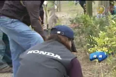 【新唐人亞太台2011年12月21日訊】鏡頭繼續來到嘉義,縣長張花冠選在就職兩周年,帶領縣內一級主管和一群環保志工、大專生,在高鐵西路的公園用地種樹,並為象徵嘉義精神的「嘉義人」公仔揭牌,場面相當溫馨熱鬧 。