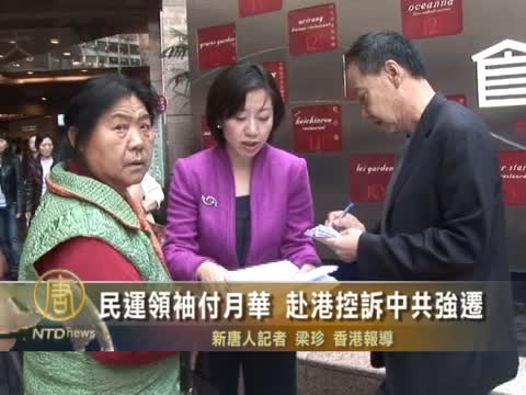 【新唐人2011年12月22日訊】近年來,大陸訪民遭強遷個案日增,他們在大陸申訴無門,紛紛到香港訴冤。近日,曾參與民主牆運動的大陸民運領袖付月華專程赴港,向媒體公開遭到中共非法強遷的遭遇,呼籲外界關注。