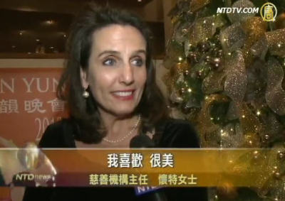 慈善機構主任懷特女士:「我喜歡。很美。舞臺、天幕都很美。具有神奇的力量,色彩非常美。」