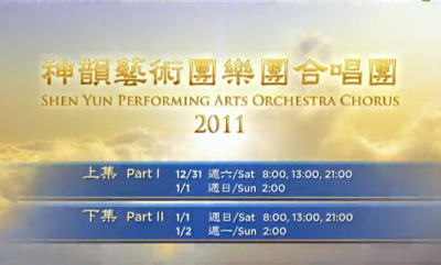 【新唐人2011年12月25日訊】神韻藝術團樂團合唱團2011演唱會實況,上下集即將於元旦假期在本台播出,敬請收看。