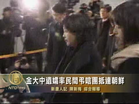 【新唐人2011年12月26日訊】在韓國、朝鮮政府的同意下,一個韓國民間弔唁團,包括韓國前總統金大中(Kim Dae-jung)的遺孀李姬鎬,星期一(12月26日)抵達平壤,對金正日致哀。
