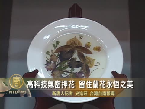 【新唐人2011年12月26日訊】傳統的蘭花產業現在有了新出路,台灣業者結合綠能相關科技開發出的「氣密押花」,除了可以百分之百真空,留住蘭花永恆之美,未來還可應用到大型壁畫、傢俱、屏風、裝潢隔間等,開創出更大的商機。