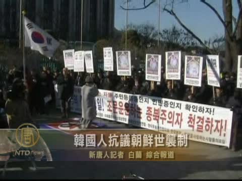 【新唐人2011年12月27日訊】韓國人星期一舉行抗議活動,抗議朝鮮政權實行世襲制並抗議韓國民間代表團到朝鮮向獨裁者金正日弔唁。