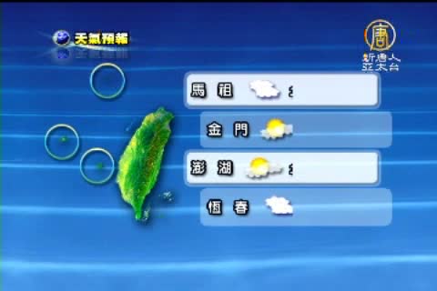【新唐人亞太台2011年12月27日訊】來關心天氣。明天臺灣北部以及東半部是有雨的天氣,其他地區則是多雲到晴。氣溫方面,各地最低溫大約15、16度。從週四開始,氣溫會開始逐漸下降。以下帶您關心12月28號的天氣情況。