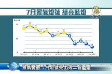 2012-07-27 21:15:31行政院經濟建設委員會今天公布6月景氣燈號為藍燈,連續第8個月藍燈,景氣分數維持跟5月的15分,顯示國內景氣仍然低緩。經建會表示,今年6月國內勞動市場維持穩定,但金融面、生產面、貿易面、消費面指標表現仍欠理想。領先指標僅微幅上升,同時指標則勉強持平,微降 0.05%。來看到圖卡中的顯示:最近一年來的各月景氣對策信號,從2011年五月的綠燈,就一路下探,一直到同一年的十一月,就開始連續亮出藍燈,到今年的六月,已經邁向第八顆藍燈。那麼究竟什麼時候會觸底反彈,經建會持樂觀態度,說,下半年可望好轉。