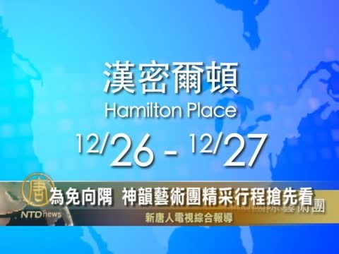 神韻國際藝術團目前在加拿大東部,從12月26日到27日在多倫多附近的漢密爾頓市演出兩場,然後將於12月30日到美國東北部麻州(麻薩諸塞州)的伍斯特市演出。2012年1月轉往加拿大的蒙特利爾和多倫多等城市演出。