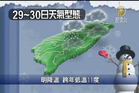 【新唐人亞太台2011年12月28日訊】好的,謝謝吳教授的分析。來關心天氣,天氣好不容易放晴回暖,不過從明天(29日)起又會受到東北季風影響,不但各地都會有短暫雨,氣溫也會開始下降,到了週六(31日)跨年,還有冷氣團會報到,夜間低溫下探11度,民眾可能要在低溫下雨中倒數跨年。