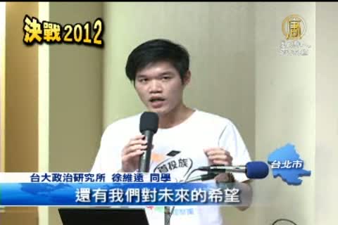 台大政治研究所 徐維遠 同學:「我們觀察選舉到現在,我們非常非常的懷疑,當我們投下那一張薄薄的選票的時候,上面所承載的,我們青年人的心聲還有我們對未來的希望,候選人你們感受到了嗎?」