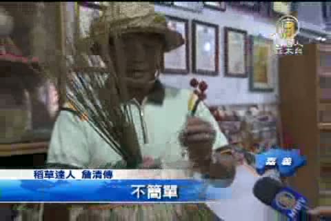 【新唐人亞太台2011年12月29日訊】您知道三枝稻草可以做出什麼嗎?答案是「糖葫蘆」,這可是榮獲「百年百大芳草人物」詹清傳阿伯利用稻草做成的第一個創意作品;念舊的阿傳伯,憑著小時候的記憶,將撿回來的稻草,編織成各式各樣懷舊的手工藝品,就連總統馬英九看了都喜歡。透過鏡頭帶您一起去看看。
