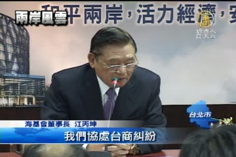 【新唐人亞太台2011年12月29日訊】新聞一開始,先帶您看到,年關將至,許多部會都在最近召開年終記者會。向國人報告今年的工作情況。今天海基會舉辦年終記者會,強調三年來,海基會收到台商人身安全救助有七千多件,經貿糾紛協處一千兩百多件,數字比前政府的三年還多,董事長江丙坤預告,希望在八次江陳會簽署投保協議。