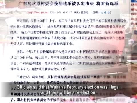 【新唐人2011年12月30日訊】曾令全球聚焦的廣東烏坎村民抗暴事件似乎暫告一段落。12月28號中共當局對烏坎村2月份的換屆選舉認定為違法,將重新選舉。烏坎村民表示,土地沒處理好,他們不會接受選舉,如果當局選自己的人,村民將繼續上訪。分析指出,如果當局採用欺騙手段將帶來更大的農民抗暴運動。