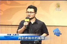 作家 九把刀:「在上台之前一直在盤算著這個高度可不可以爬上來,但是這個就是冒險。我寫小說已經寫了12年,寫了60本書,總算有一本書是十大影響力,就之前都不知道自己在幹嘛。我這兩年會非常努力的再創造兩年的高峰,又第三年我又要存錢拍電影了。」