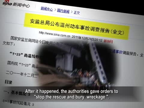 造成200多死傷的溫州高鐵追尾事故,中共當局終於在2011年12月28號公布了調查報告。對於事故發生後,當局下令「停止搜救,掩埋車體」的做法,報告中卻出現了「沒有人下達過停止救援的指令」。