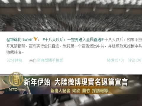 新年伊始 大陸微博現實名退黨宣言