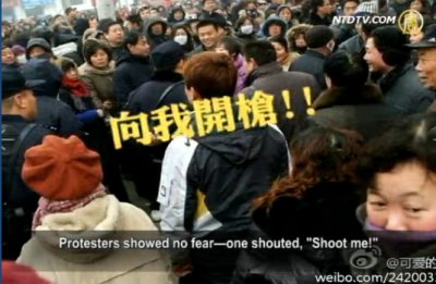 發生在2012年新年第一天的大規模民眾抗議事件,使得河南安陽當局萬分緊張。抗議現場,當局佈置了上千名手持盾牌的武警進行封鎖,威脅民眾:10分鐘之內離開現場,否則將進行抓捕。抗議人群沒有懼怕,有人高喊:「向我開槍」。
