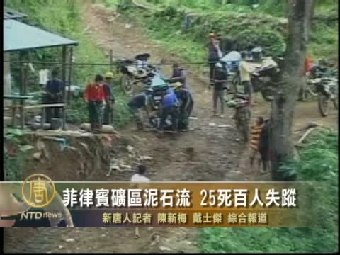 菲律賓地方救災安全部門的官員表示, 星期四當地時間凌晨三四點左右,南方棉蘭老島的一個礦區發生泥石流,造成至少25死亡,15人受傷,還有約一百人下落不明。