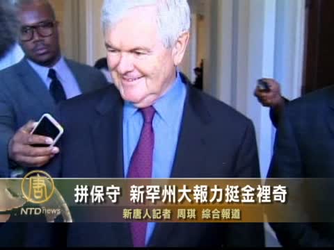 【新唐人2012年1月6日訊】下週二新罕布希爾州共和黨黨內初選,羅姆尼可以說是勝算最大的人,連黨內大佬馬侃也為他背書。不過,新罕州最大報紙工會領袖報,則是在週四力挺前眾議院議長金里奇,指責羅姆尼不夠保守。