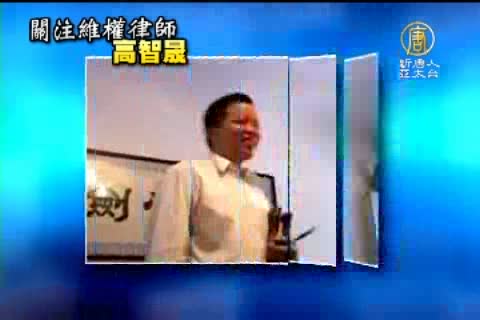 【新唐人亞太台2012年1月6日訊】來關注中國為權律師高智晟的消息。中國著名人權律師高智晟在失蹤20個月後,中共喉舌《新華社》第一次在海外發佈高智晟消息,消息表示,北京第一中級法院「撤銷」了對高智晟的五年緩刑,高智晟再被收監三年。然而在緩刑期間,高智晟仍遭中共囚禁,與家人失去聯繫。目前高智晟被關在距離新疆首府烏魯木齊市八百多公里遠的「沙雅縣監獄」。