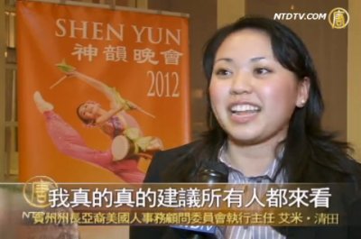 賓州州長亞裔美國人事務顧問委員會執行主任艾米‧清田:「演出驚人的美!我真的很驚訝,因為我第一次看到中國傳統舞蹈。演出真是表現了中國文化的悠久和豐富的的歷史。我非常高興今天來看演出。我真的真的建議所有人都來看。」