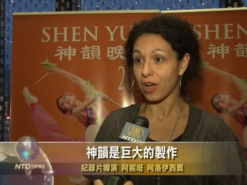 【新唐人2012年1月8日訊】記錄片導演、電視節目主持人阿妮塔⋅阿洛伊西奧(Anita Aloisio)在觀賞了美國神韻國際藝術團在蒙特利爾的演出後,感歎神韻是一部藝術巨作。同許多藝術家一樣,她說自己也從神韻中獲得了靈感。