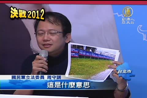 【新唐人亞太台2012年1月10日訊】來看到也是打得相當激烈的立委選戰。台北市第二選區立法委員選舉,由國民黨現任立委周守訓,對上民進黨籍前新聞局長姚文智。在兩人的選情持續膠著的情況之下,今天(10日),周守訓則是針對姚文智的抹黑文宣,提出告訴。