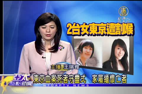 【新唐人亞太台2012年1月10日訊】歡迎回到新聞現場,東京血案遇害2名台灣女學生,已經在當地時間今天晚間6點,由草苑日語學校和家屬共同舉辦守靈儀式,日本警視廳,也派出人員站崗,還特別隔出了媒體採訪區。那麼在守靈儀式之後,明天上午8點 45分,將舉行告別式,火化後,由家人將2位女學生的骨灰,回到家鄉,台灣。