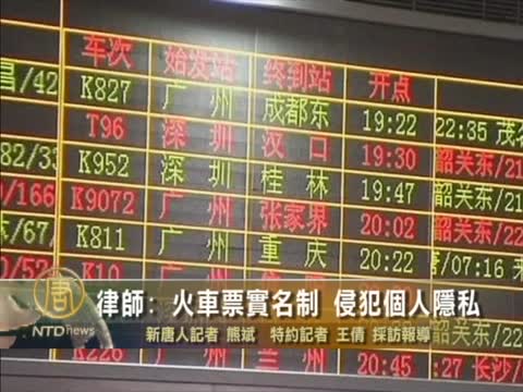 【新唐人2012年1月11日訊】中國鐵路部門從1月1日起,全面施行火車票實名制,並推出網絡訂票、電話訂票等新措施,但是火車票,仍然「一票難求」。長期關注實名制的北京律師謝燕益認為,實名制非但不能解決購票的公平和效率問題,還涉及侵犯個人隱私的問題。