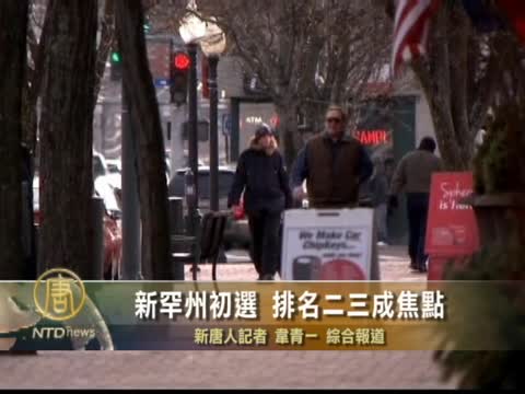 【新唐人2012年1月11日訊】備受關注的美國共和黨新罕布希爾初選10日正式投票開跑。繼一週前的愛荷華州初選,羅姆尼幾乎會再次穩坐頭把交椅,但由於共和黨參選人此前黑馬頻出,各領風騷三五週,這次初選誰將位列第二、第三,倍受各方關注。