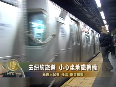 【新唐人2012年1月11日訊】去紐約觀光旅遊要注意坐地鐵的禮儀。如果在地鐵裡把腳搭在其他座位,或者躺下來睡覺,不僅可能會吃到50美元的罰單,還可能被巡警送到監獄去。