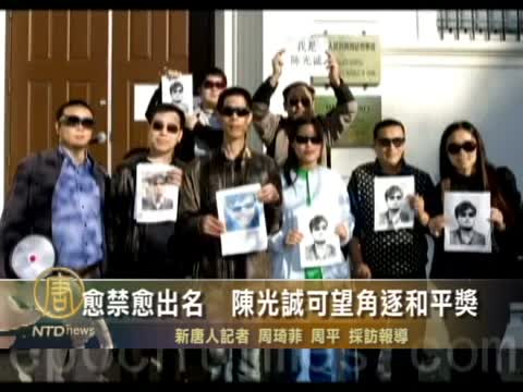 【新唐人2012年1月11日訊】山東盲人維權人士陳光誠,在當局滴水不漏的軟禁之下,是愈禁愈出名,不僅之前連「蝙蝠俠」都想探訪,現在還有一群人想推動陳光誠角逐諾貝爾和平獎。