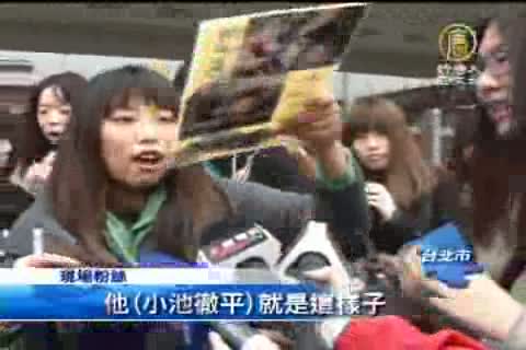 【新唐人亞太台2012年1月13日訊】日本超人氣偶像小池徹平今天來台,為主演的電影《菜鳥薪鮮人》宣傳,他將出席2場粉絲見面會。今天(13號)小池徹平在松山機場抵台後,露出他迷人的笑容,讓原本守秩序的粉絲瞬間瘋狂。