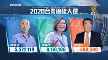 台灣第15屆總統選舉 蔡英文、韓國瑜、宋楚瑜票數