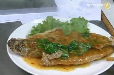 泰式料理店業者:「把骨頭去掉之後經過醃製,(將鱸魚沾上)薄薄的粉,在經過炸,炸完之後就外酥內軟,最主要是有一個三味醬,淋上去所以會有微微甜微微酸,真的很入味口感很好。」