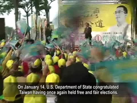 美國國務院1月14號在賀文中說,台灣又一次舉行了自由公平的選舉。台灣人民應對他們民主的這個最新里程碑感到自豪。