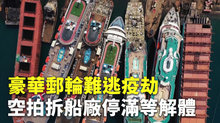 豪華郵輪難逃疫劫 空拍拆船廠停滿等解體