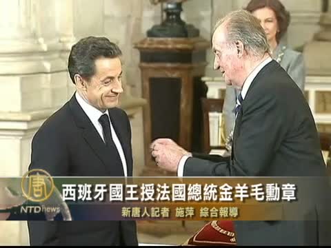 【新唐人2012年1月17日訊】1月16日,西班牙國王胡安•卡洛斯授予法國總統尼古拉斯•薩爾科齊金羊毛勳章,以表彰法國在反恐行動上對西班牙的幫助。