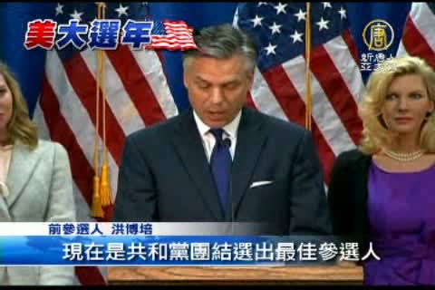 【新唐人亞太台2012年1月17日訊】美國總統大選,共和黨初選正在進行,而競選一直沒什麼起色的前美國駐華大使洪博培,宣布放棄角逐共和黨總統候選人,轉而支持目前的共和黨呼聲最高的羅姆尼。