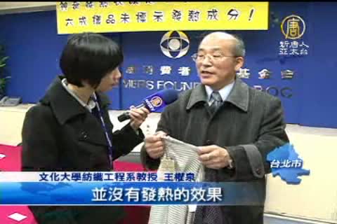 文化大學紡織工程系教授 王權泉:「這個聚丙烯酸酯是5%具有發熱效果,這個是有發熱效果,但是它沒有認證,我們也無從得知它是否有實質發熱功能。」