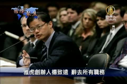 【新唐人亞太台2012年1月18日訊】星期二(17日),雅虎共同創辦人楊致遠宣佈辭去公司董事和所有其它職務。消息公布後,雅虎股價卻在盤後交易時段上漲4.3%,從投資人的反應可以看出,許多人將對楊致遠離開雅虎竟是感到樂觀。外界則普遍認為,由於楊致遠數次的錯誤決策令股東蒙受損失,而使他與雅虎股東及董事會的關係徹底破滅。