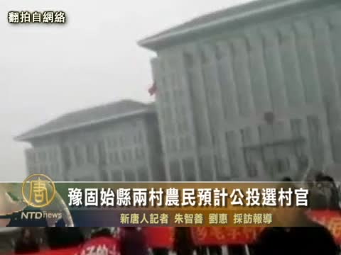 【新唐人2012年1月19日訊】河南固始縣汪棚鄉毛學村,和城關鎮東大店子社區,近百個農民近日拉著橫幅上街遊行,抗議村官換屆選舉遭取消,他們打算髮起公投,選出能真正替村民講話的村官,並討回遭強徵的土地。