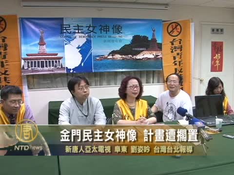【新唐人2012年1月19日訊】海外雕塑家陳維明,計劃在金門設置民主女神像,原本已經和地方政府達成協議,不過計劃卻突然喊停。金門縣文化局表示,因為地點不適合,所以決定暫停計劃。