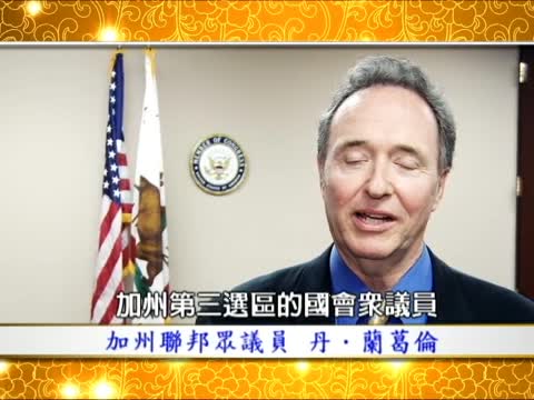 【新唐人2012年1月21日訊】我是Dan Lungren,加州第三選區的國會眾議員,我代表選區祝願大家新年好運 。尤其在中國新年,1月23號,龍年來臨之際。