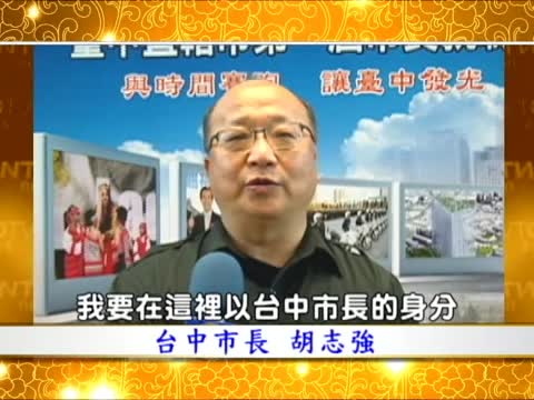 【新唐人2012年1月21日訊】台灣臺中市長胡志強:「又要過新年了,我要在這裡以臺中市長的身份,祝大家新年快樂,希望這一年都平安、順利、健康。然後,有空一定要來臺中市玩喔!歡迎!歡迎!」