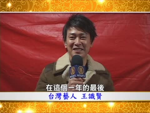 台灣藝人王識賢:「新唐人的觀眾朋友們大家好,我是王識賢,在這個一年的最後,還有一年的開始,識賢要在這裡祝福大家,在新的一年都能夠心想事成、美夢成真,永遠都有一個年輕的心,恭喜恭喜。」