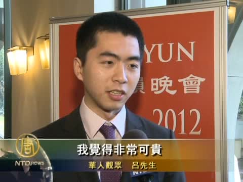 華人觀眾 呂先生:”首先我覺得中國的文化能在異國他鄉保存得如此完整,發揚光大的如此好,我覺得非常可貴。其次,我又覺得只能在異國他鄉保存,我覺得非常可悲。“